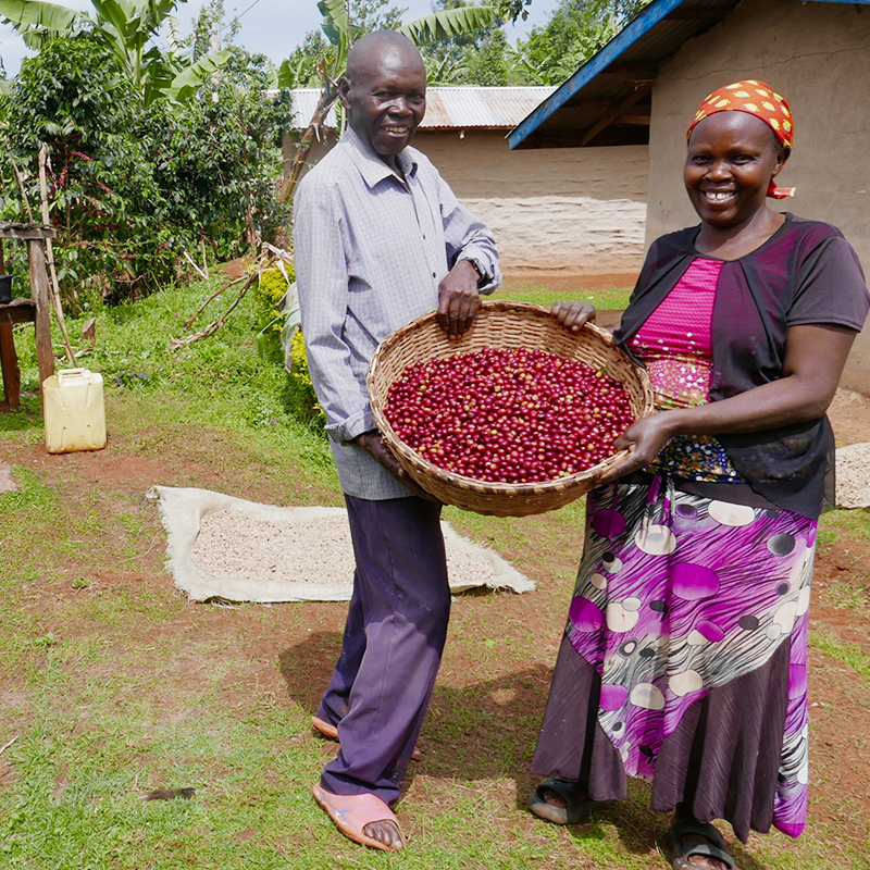Coffee cherries are maturing gradually on the trees. The selection of perfectly ripe cherries is the most important condition for high quality coffee. The harvest happens in several cycles during the “peak season”, that is after the first “fly crop”, between the first harvest of mature cherries and the harvest of the last ones, which have already lost their full aromatic potential.