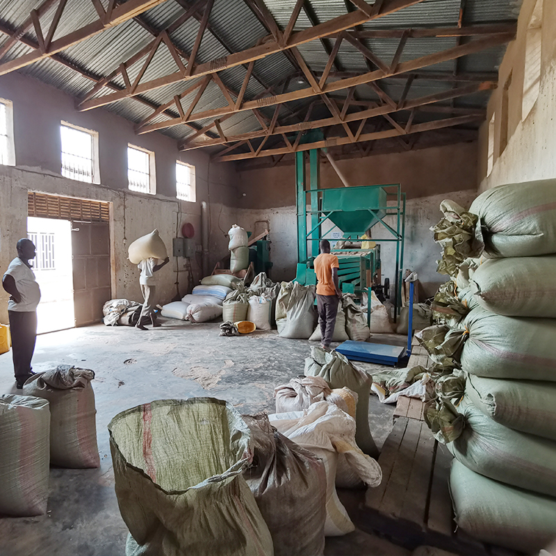 The final step takes place in the factory. The parchment is “hulled”, that means the silver skin (parchment) is taken off the green bean. The beans are transferred to a combined machinery where the hulled beans pass over a gravity table and enter into screens which separate the different sizes of beans (“grading”) according to grade or screen. The largest beans are called grade AA or screen 17, followed by A, AB and B. Size is not equivalent with quality and specialty coffee can have a mix of 60% AA, 30% A and 10% AB. After hulling, the green beans are yet again sorted, by hand as well as by a digitalized scanning machine, the “color sorter”. Thereby the last defects are eliminated.